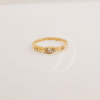 Te presentamos nuestro anillo Tabata, esta pieza celebra la elegancia mínima: un aro fino de oro 18k realza un trio de destellos con piedra central más grande flanqueada por dos microcircones. Los delicados detalles en oro enmarcan la luz y crean un brillo sutil —perfecto para anillo promesa o un regalo con significado atemporal(ayer, hoy y mañana). Su silueta es ligera, elegante y fina, pensada para combinar con otros anillos o llevarlo solo como protagonista.