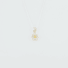El juego Flor de Encanto es una exquisita combinación de diseño y simbolismo, compuesto por delicados aretes de plata y un elegante dije de plata, ambos embellecidos con placas de oro de 18 quilates y brillantes circones en forma de flores. Esta joya doble representa la belleza natural y femenina.