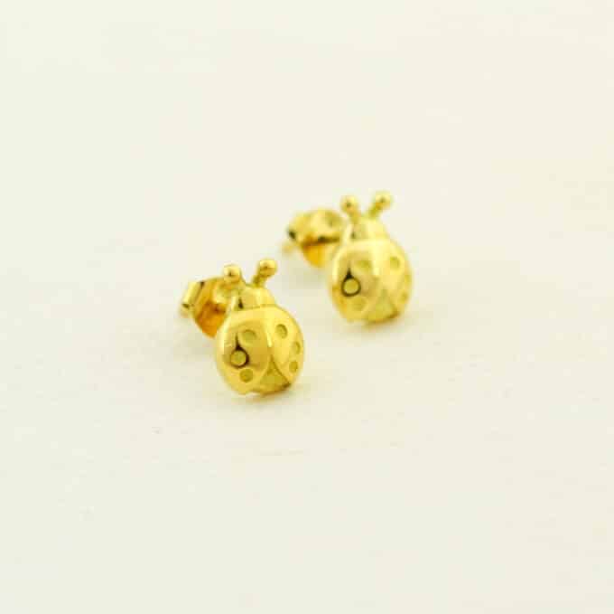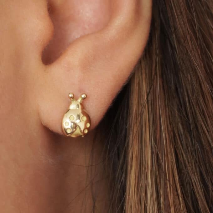 Los aretes Mariquitas están elaborados en oro amarillo de 18k, con un diseño tierno y elegante que representa a la mariquita, símbolo de buena suerte, amor y protección. Son aretes pegados, ideales para uso diario o como detalle especial para mujeres que aman lo único y significativo.